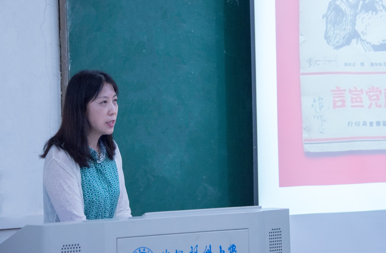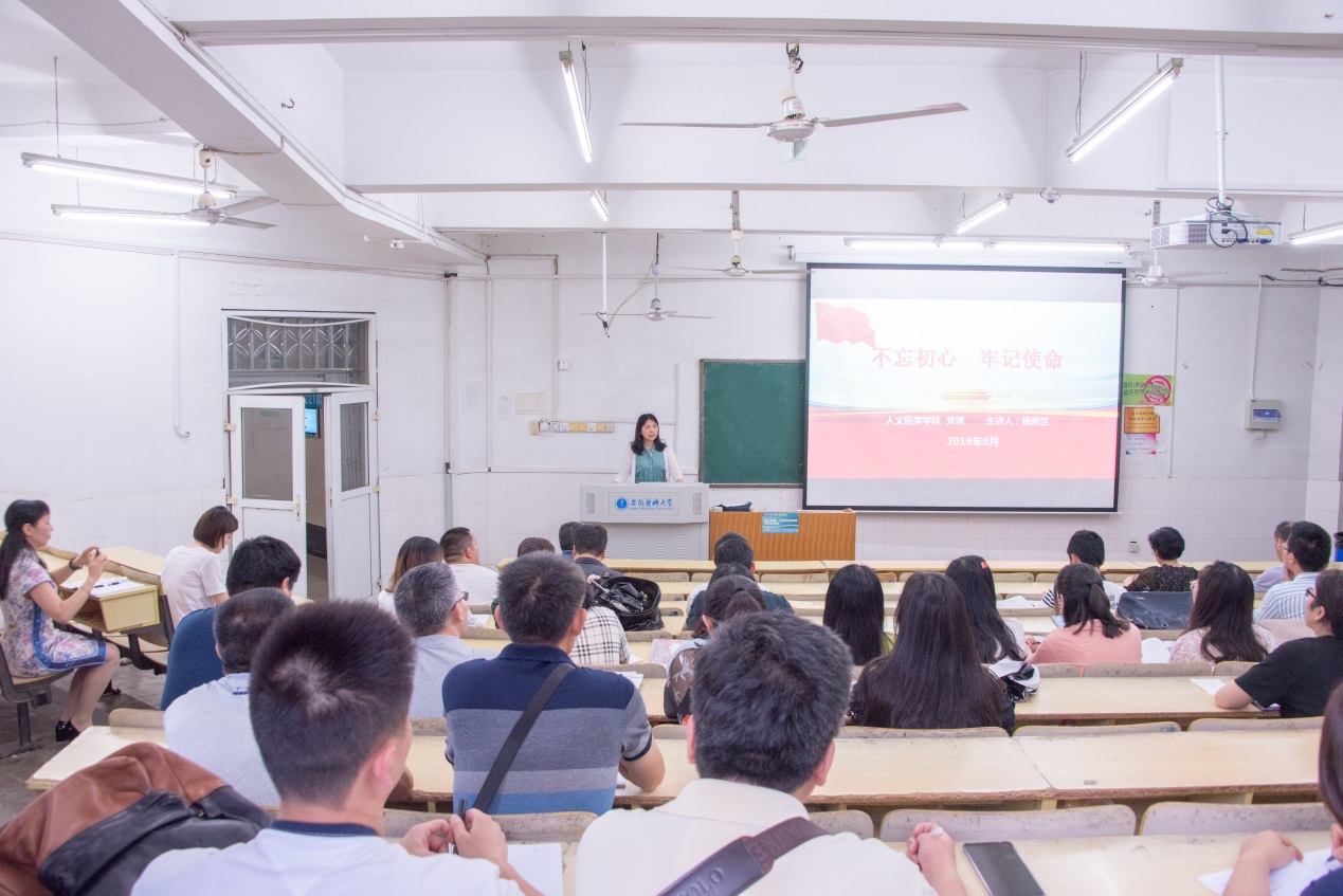 6月19日下午,人文医学杏吧原创 党总支书记杨秀兰在12101教室,给全院教师党员主讲“不忘初心、牢记使命”专题党课。
