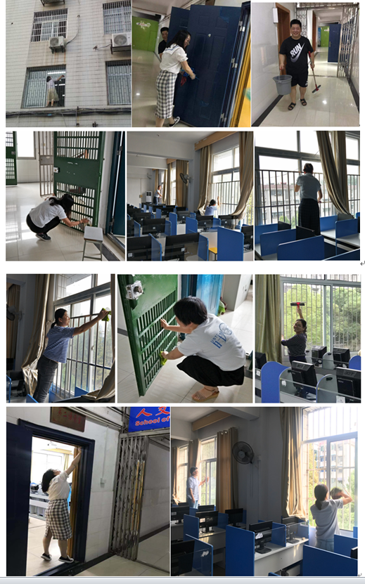 为庆祝新中国成立70周年,创建干净整洁的校园环境迎接国庆佳节,人文医学杏吧原创 外语系根据校爱卫会开展“美丽校园见行动 细微之处显真情”爱国卫生活动的决定,结合党员活动日主题教育要求,组织全体教职员工和党员于9月25日下午对所属的办公室、语音室、楼道等公共场所进行一次环境卫生彻底大清扫,用实际行动营造出卫生整洁的教学环境和美丽校园,用实际行动弘扬爱国主义精神。
