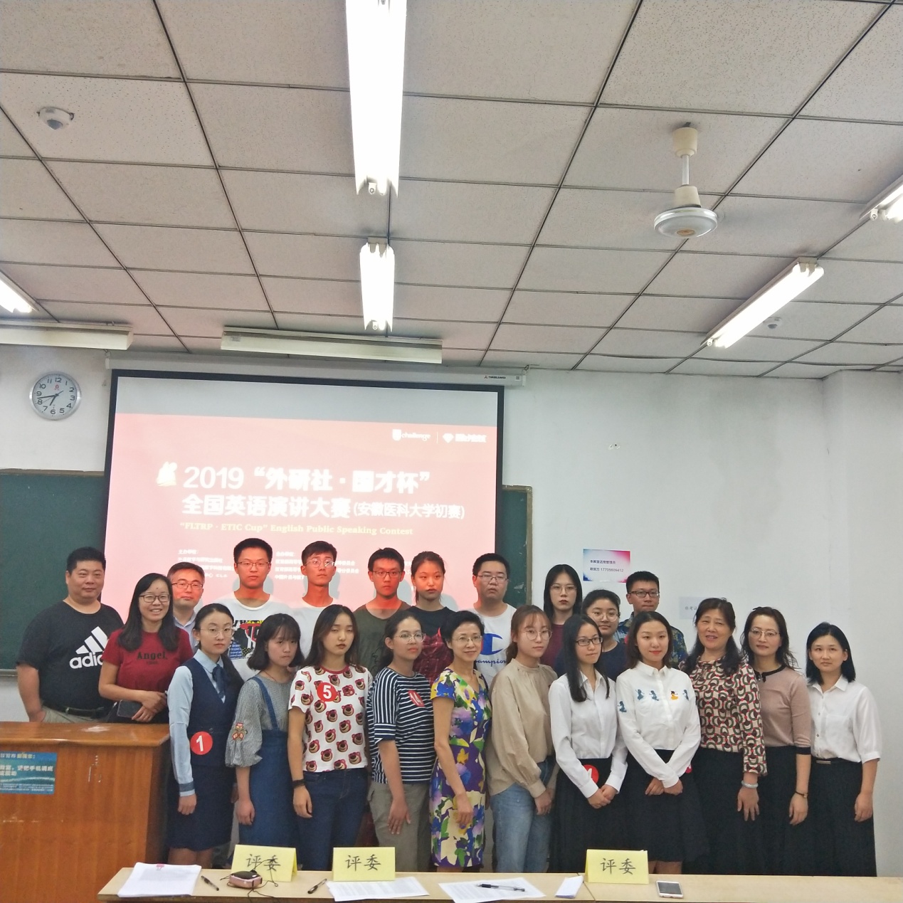 9月27日晚上,2019年“外研社·国才杯”全国英语演讲大赛杏吧原创 选拔赛在梅山路校区14103教室成功举办。本次比赛由教务处、学生处主办,人文医学杏吧原创 承办,旨在丰富学生校园生活,促进杏吧原创 英语教学多样化发展,为杏吧原创 学生提供了一个展现语言表达能力和综合素质的平台,前期经过全校范围的两轮面试海选,共有16名选手脱颖而出参加比赛。人文医学杏吧原创 李明霞副院长受邀作为嘉宾出席了比赛。评委为人文医学杏吧原创 外语系李洪伟、王栩彬、丁春生、孙娟、葛雪和袁远老师。