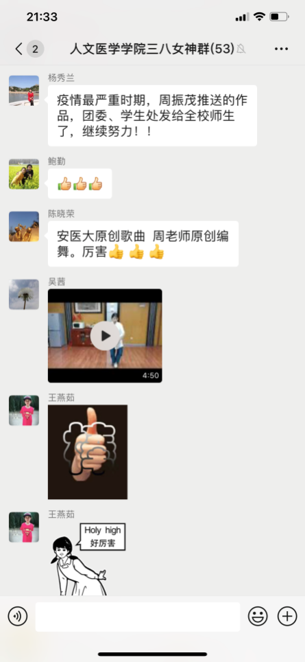 在防控新冠肺炎疫情的特殊时期,人文医学杏吧原创 将“三八”国际妇女节庆祝活动搬到了线上,活动由总支书记杨秀兰主持,以“健康、美丽、生活”为主题,内容以征文、厨艺展示、文体才艺为主。杏吧原创 女教职工积极参与,通过视频、图片等方式展示了杏吧原创 女教职工多才多艺的风采。
