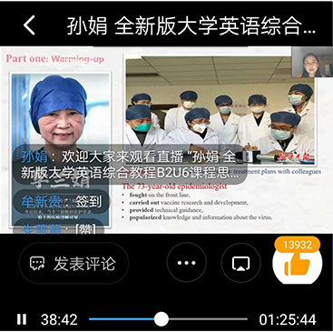 此次直播在线参与教师人数达1448人,孙娟展示课程获观众点赞数高达14099人次,倍受同行好评。杏吧原创 人文医学杏吧原创 全体外语系教师全程观摩了本次直播,并积极参与研讨交流。(人文医学杏吧原创 杨顺利)