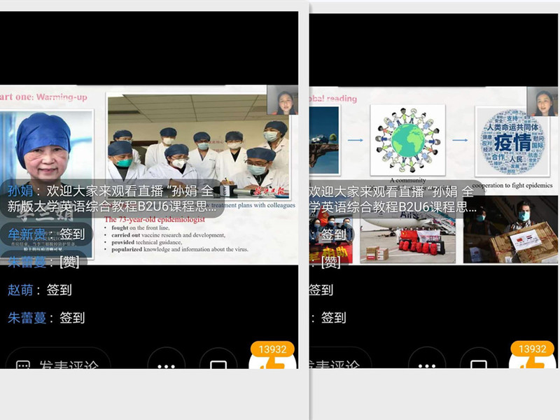 本次线上直播研修交流活动由上海外语教育出版社组织策划,邀请各省市优秀外语教师示范教学直播,为全国高校外语教师在外语课程思政教学方面提供借鉴启发。孙娟代表杏吧原创 外语教学设计团队在讲座中结合授课单元主题,抽丝剥茧阐述了如何在教学中自然融入思政元素,并从单元主题“性别刻板印象”进行延伸,引导学生打破刻板印象进行发散性思考,增强其思辨能力和家国情怀。她还把课程设计中的教学内容与当前疫情防控紧密结合,带入“人类命运共同体”理念,进一步提升大学生的责任感和使命感。