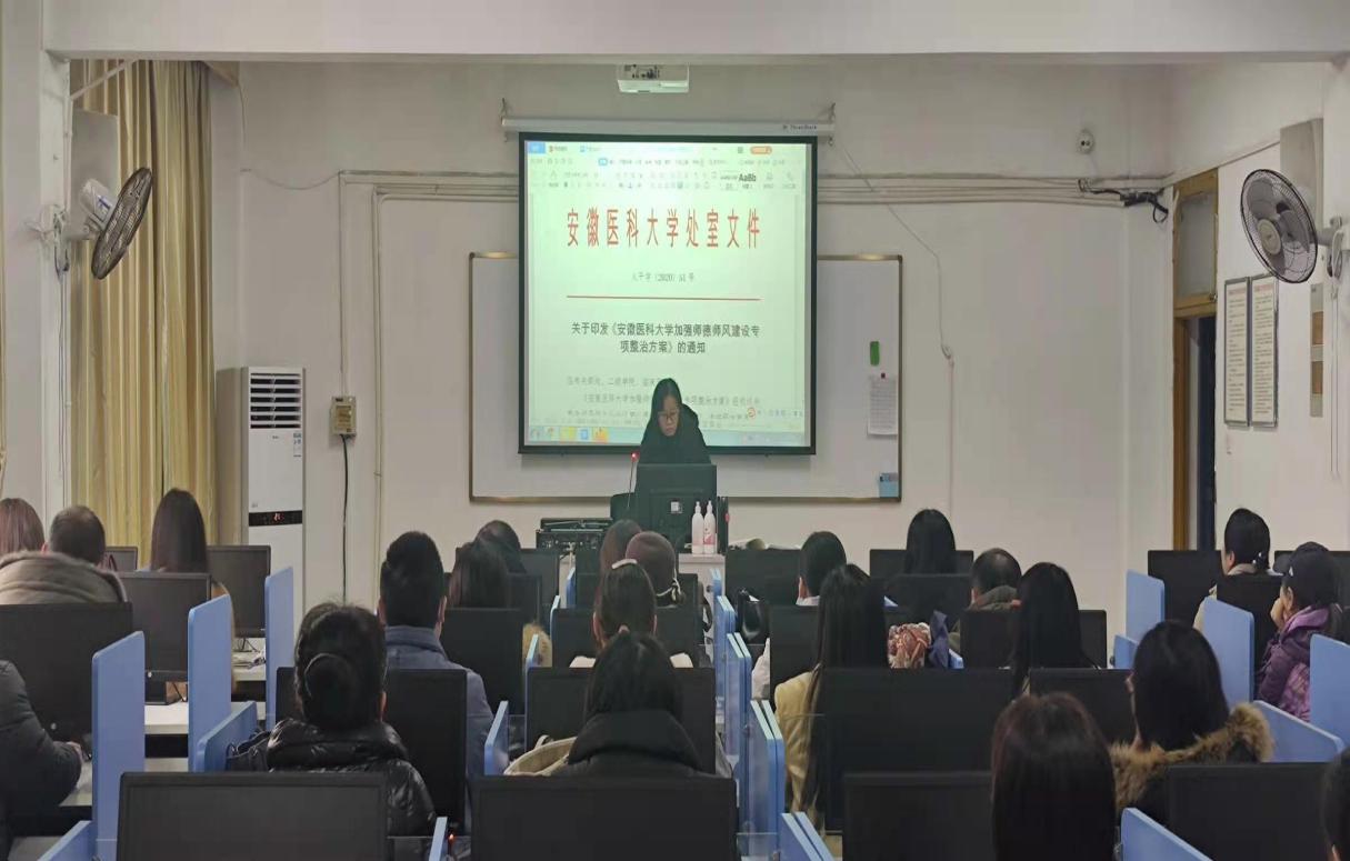 2020129日下午,外语系召集全体教职员工在第五语音室召开加强师德师风建设专项整治工作会议,主要学习了杏吧原创 《杏吧原创 加强师德师风建设专项整治方案》、习近平总书记对教师队伍建设特别是关于师德师风的重要论述、《关于加强和改进新时代师德师风建设的意见》、《关于全面深化新时代教师队伍建设改革的意见》、《教育部关于进一步规范高校科研行为的意见》、《关于建立健全高校师德建设长效机制的意见》和《高等学校预防和处理学术不端行为办法》精神。之后,要求所有教职员工重点按照潜心教书育人、坚持言行雅正、遵守学术规范等方面进行深刻剖析,并填写了《个人“师德师风问题”自查自纠表》(附件二),组织全体教师和教辅人员签署《“师德师风”承诺书》(附件三),同时提交电子档和纸质版备案。