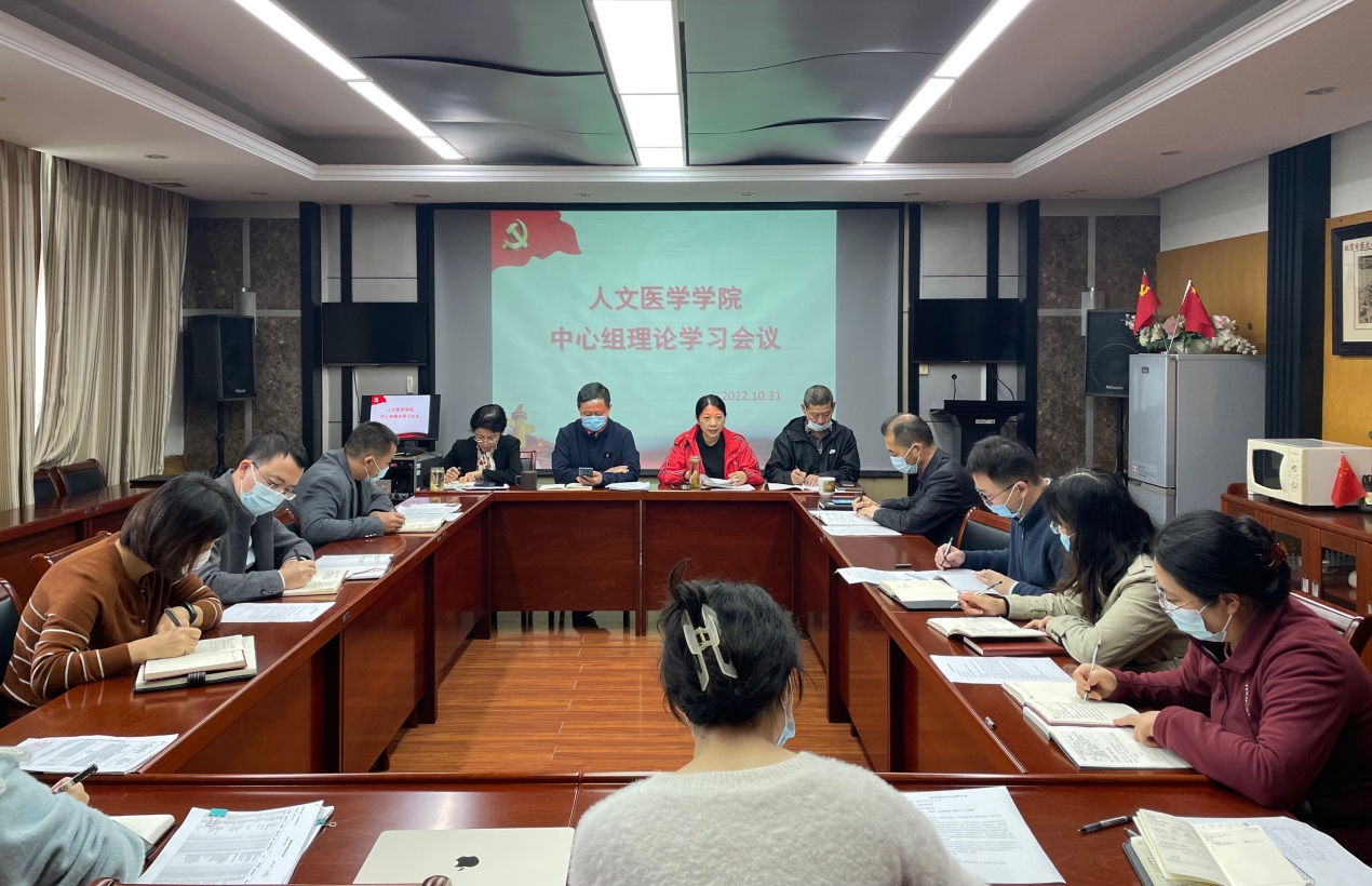 10月31日上午,院党委书记杨秀兰在杏吧原创 会议室主持召开专题会议,带领大家重温二十大报告全文、解读新修订的《中国共产党章程》、学习省委书记郑栅洁在全省传达党的二十大精神大会上的讲话。院中心组全体成员参加会议。