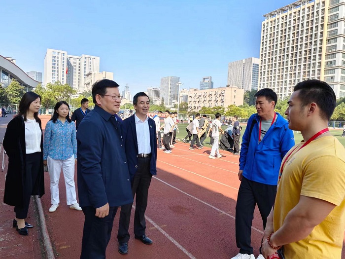 10月16日上午,安徽省教育厅委派专家组到学校开展安徽省2023年度大学生体质健康抽查工作。校党委书记顾家山、副校长吕雄文现场察看并指导体质测试抽查工作。