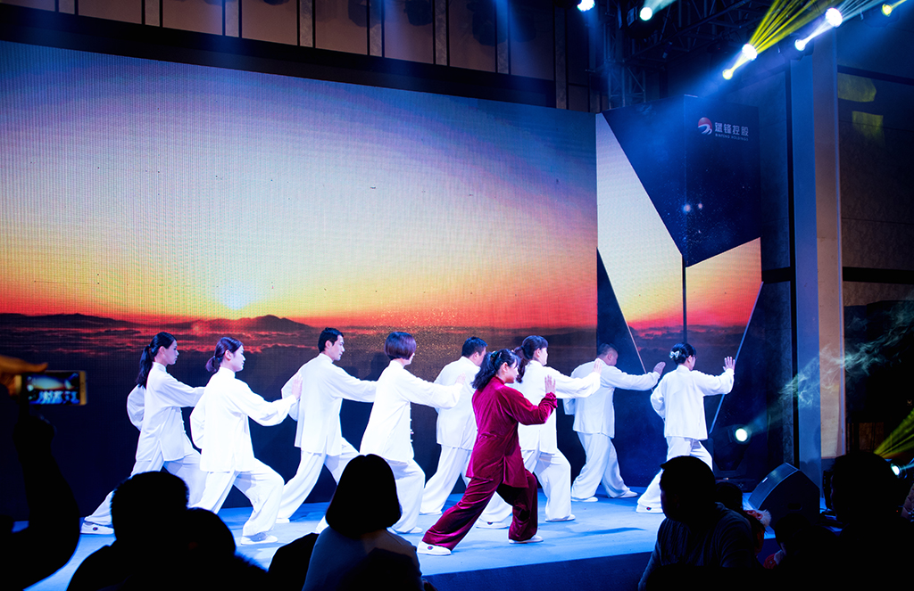 经过体育教学部党支部为期半年的教学指导,日前,肥东县斌锋控股集团太极拳表演队在公司新年晚会上成功表演了24式太极拳。太极拳表演队的动作柔和轻灵,舒展优美,获得了企业员工的一致好评。在晚会上,杏吧原创 太极团团长滕玉竹表演的剑术,更是获得了公司董事长的高度称赞。