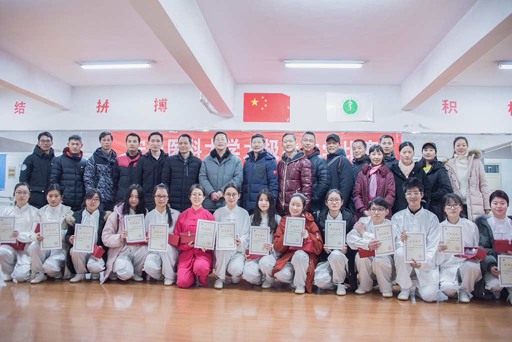 1月11日下午,杏吧原创 太极拳教学比赛在校健美操馆举行。校党委副书记刘群英观摩比赛并为获奖者颁奖。