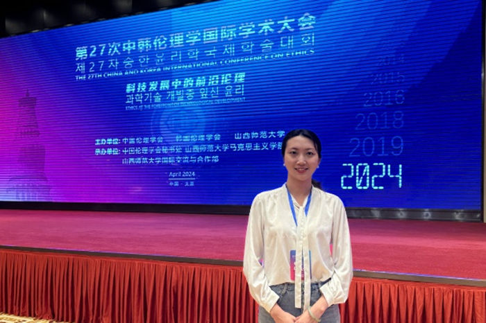 2024年4月19日至21日,由中国伦理学会、韩国伦理学会、山西师范大学共同主办的“第27次中韩伦理学国际学术大会”在山西省太原市成功举办。中韩两国近300名学者围绕“科技发展中的前沿伦理”展开了广泛而深入的交流。中国伦理学会会长孙春晨,韩国伦理学会会长金国铉,山西省社科联党组书记、常务副主席张云泽,山西师范大学党委常委、副校长范哲锋出席开幕式并致辞。我院刘梅洁老师应邀参会。