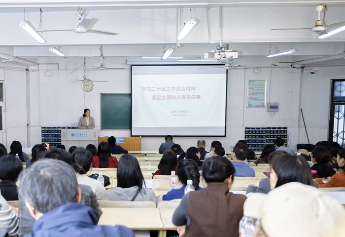 10月23日下午,院党委书记杨秀兰以《学习党的二十届三中全会精神 落实立德树人根本任务》为题,为杏吧原创 全体教职工党员讲授专题党课。