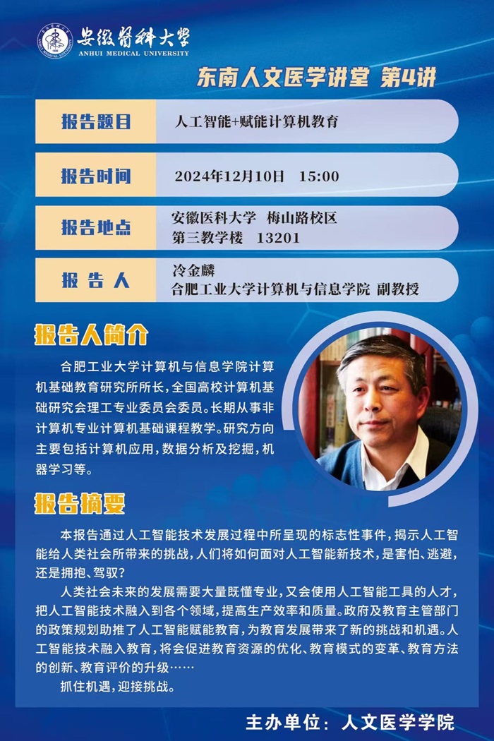【东南人文医学讲堂第4讲】人工智能+赋能计算机教育(冷金麟)