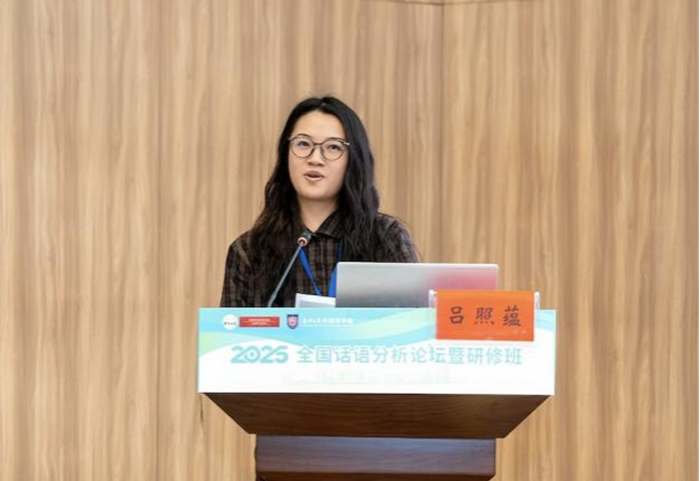 本次论坛聚焦话语分析前沿理论与实证分析,汇聚全国重点高校的专家学者,通过主旨报告、平行论坛、专家面对面等环节,搭建了高水平学术交流平台。吕照蕴在平行论坛作了题为《从工具建构到本体理解:伽达默尔语言哲学视域下的话语分析范式重构》的研究汇报,她针对当前话语分析的“语言工具化、认知操作化与理论碎片化”范式困境,以伽达默尔语言哲学为核心切入点,提出了话语分析新理论范式的构建路径。同时,她与南京师范大学辛斌教授搭档点评专家,围绕话语研究的“话语与权力”主题,与辛教授对学者的发言进行了专业点评,从研究拟题、研究设计和投稿选择等方面提出建设性意见。