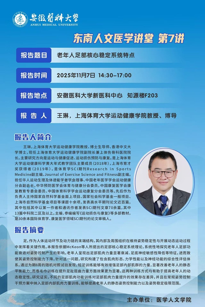 【东南人文医学讲堂第7讲】老年人足部核心稳定系统特点(王琳)