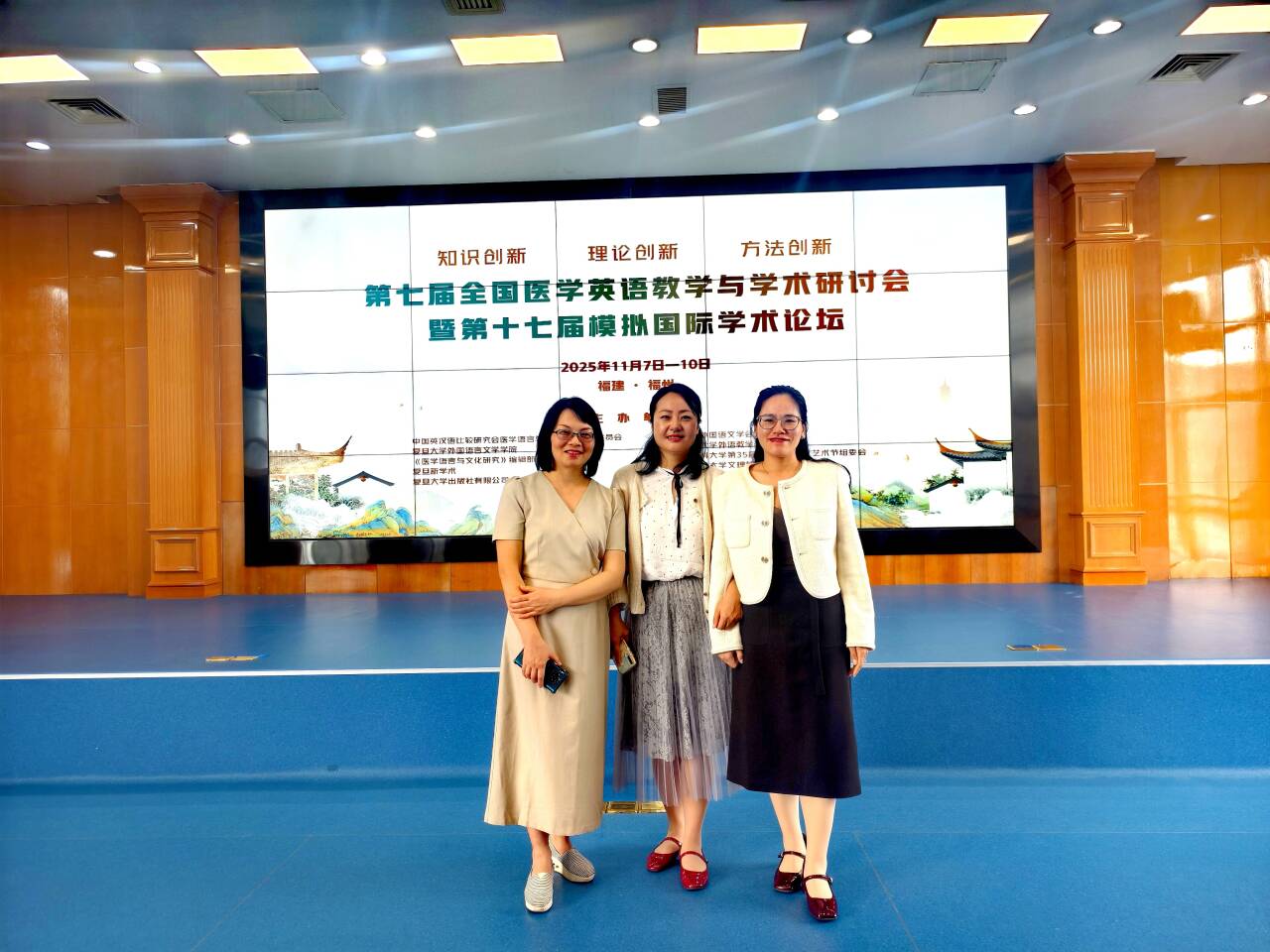 2025年11月7日至10日,第七届全国医学英语教学与学术研讨会暨第十七届模拟国际学术论坛在福建福州举行,我系陈艳君、徐燕、万琼老师参会交流。